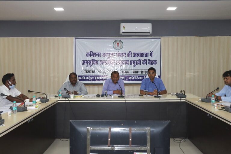 बैठक में जाति प्रमाण पत्र, वनाधिकार पट्टे सहित विभिन्न विषयों पर की गई चर्चा कोरिया 13 जुलाई 2022/सरगुजा संभाग आयुक्त...