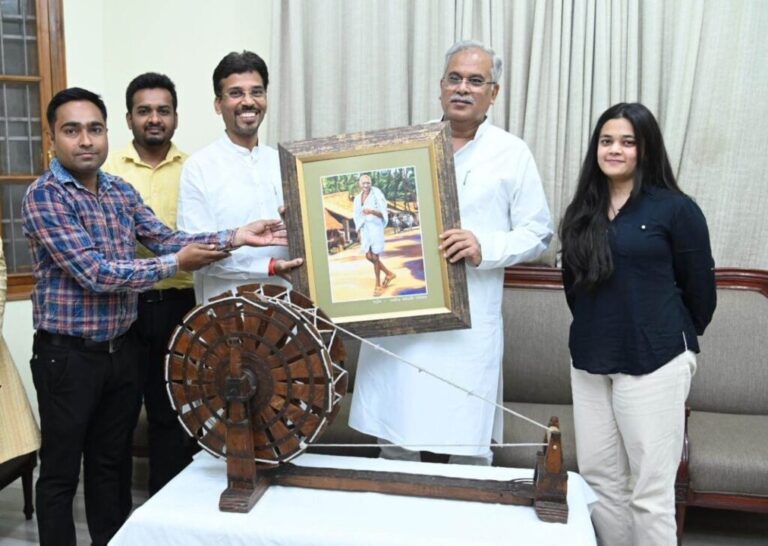 मुख्यमंत्री को रायपुर के व्यवसायी श्री कोठारीे ने आत्मीय भाव से भेंट किया 65 साल पुराना गांधी चरखा रायपुर, 02...