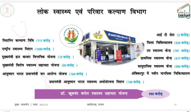 स्वास्थ्य एवं परिवार कल्याण के लिए 5497 करोड़ रूपए और चिकित्सा शिक्षा विभाग के लिए 2240 करोड़ रूपए के बजट...