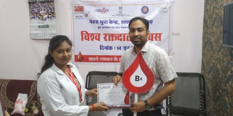रायपुर। नेहरू युवा केन्द्र रायपुर छग, युवा कार्यक्रम एवं खेल मंत्रालय भारत सरकार द्वारा विश्व रक्तदाता दिवस के उपलक्ष्य पर...