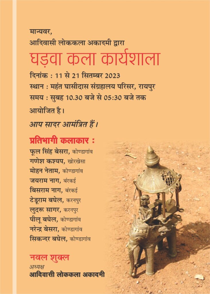 रायपुर। आदिवासी लोक कला अकादमी की ओर से दस दिवसीय गढ़वा कला कार्यशाला का आयोजन 11 सितंबर से 21 सितंबर...