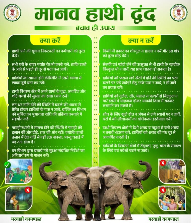 हाथी-मानव द्वंद रोकने चलाया गया जन-जागरूकता अभियान रायपुर, 08 अक्टूबर 2023/मरवाही वनमण्डल, पेण्ड्रारोड अंतर्गत प्रतिवर्ष की भांति इस वर्ष भी...