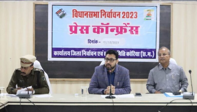 ????????????? मनेंद्रगढ़/02 दिसम्बर 2023/ आज कलेक्ट्रेट सभा कक्ष में प्रेस वार्ता आयोजित की गई। ज्ञात हो कि छत्तीसगढ़ विधान सभा निर्वाचन...