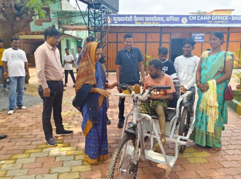 दिव्यांग के चेहरे में आई मुस्कान मुख्यमंत्री की धर्मपत्नी श्रीमती कौशल्या साय ने दिव्यांग को भेंट की चाबी रायपुर, 08...