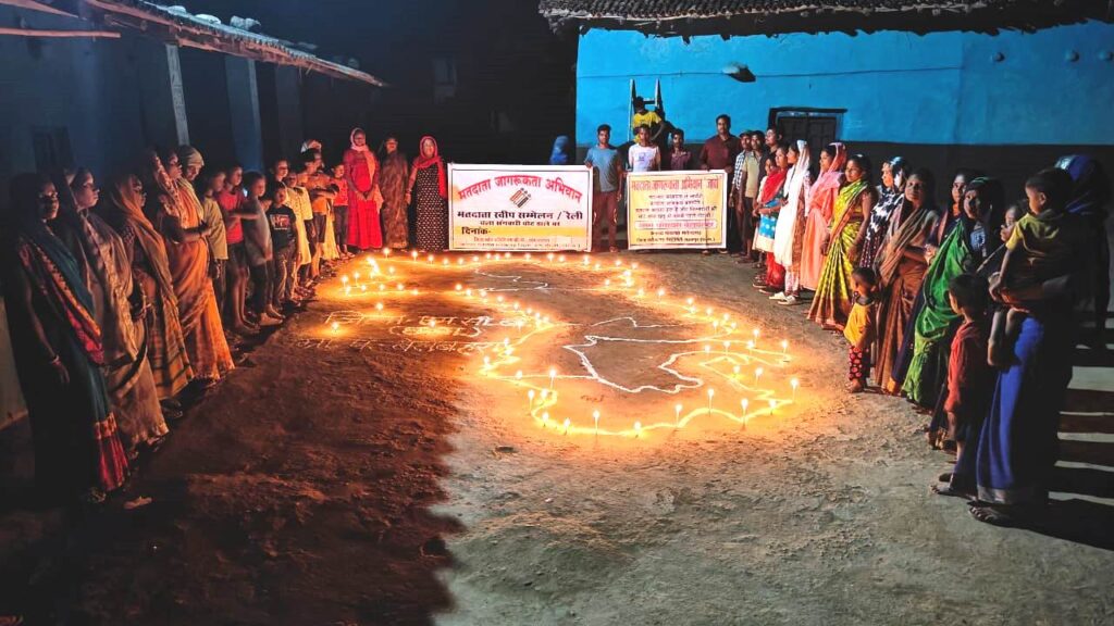 जिले का नक्शा बना कैंडल प्रज्जवलित कर मतदाताओं किया गया जागरूक