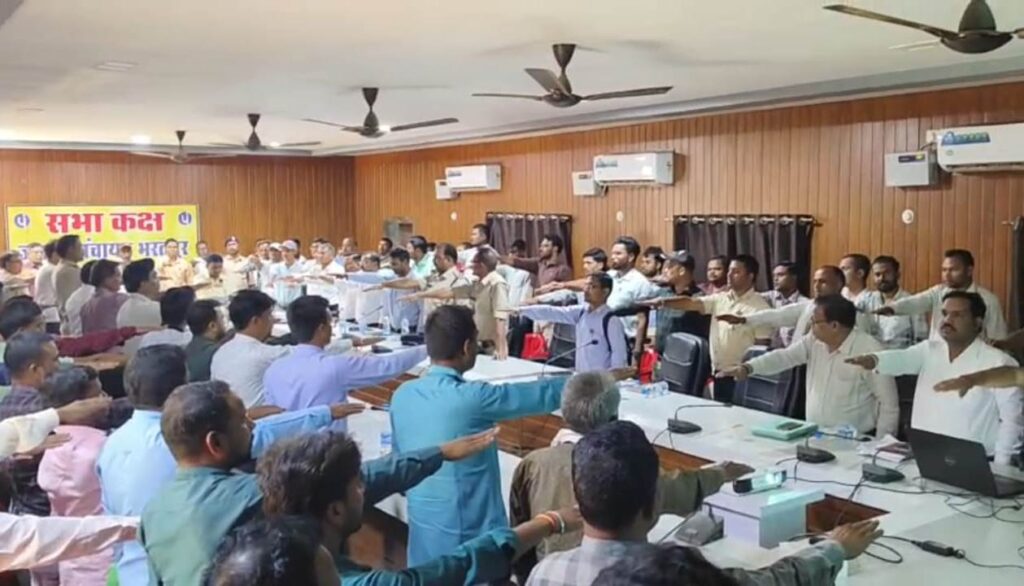 मनेंद्रगढ़/15 अप्रैल 2024/ कलेक्टर एवं जिला निर्वाचन अधिकारी श्री डी. राहुल वेंकट तथा पुलिस अधीक्षक श्री चंद्रमोहन सिंह ने लोकसभा निर्वाचन 2024 को संपन्न कराने हेतु जनपद पंचायत भरतपुर के सभा कक्ष में दूरस्थ क्षेत्रों के सेक्टर अधिकारी सचिव, बीएलओ एवं अन्य अधिकारी कर्मचारियों सहित निर्वाचन कार्य में सुरक्षा के लिए तैनात सुरक्षा कर्मी तथा कोटवार की बैठक लेकर स्वतंत्र, निष्पक्ष एवं शांतिपूर्ण निर्वाचन कराने आवश्यक दिशा निर्देश दिये। इस दौरान उन्होंने उपस्थित अधिकारी एवं कर्मचारियों को स्वीप गतिविधियों के अंतर्गत मतदाता शपथ दिलाई।