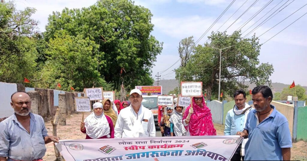 मतदाताओं को जागरूक करने महिलाओं ने तख्ती पर स्लोगन लिख निकाली रैली