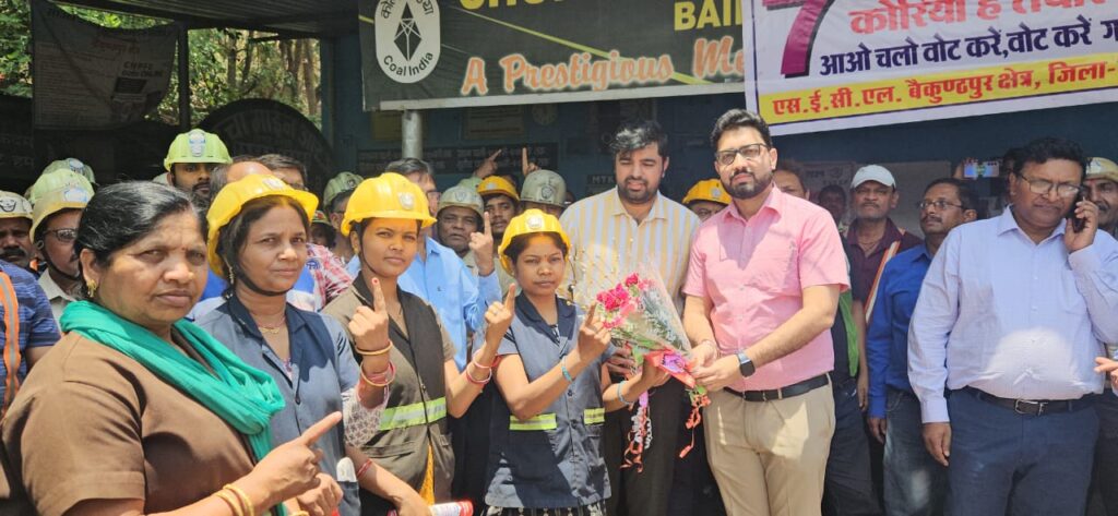 आज कलेक्टर व जिला निर्वाचन अधिकारी श्री विनय कुमार लंगेह जिला पंचायत सीईओ व स्वीप कार्यक्रम के नोडल अधिकारी डॉ. आशुतोष चतुर्वेदी, चरचा माइन पहुंच कर यहां कार्यरत श्रमवीरों को 7 मई को होने वाले मतदान के लिए आमंत्रण पत्र एवं बुके प्रदान किए। इस अवसर पर बड़ी संख्या में महिला कर्मचारी, अधिकारी भी उपस्थित थीं।