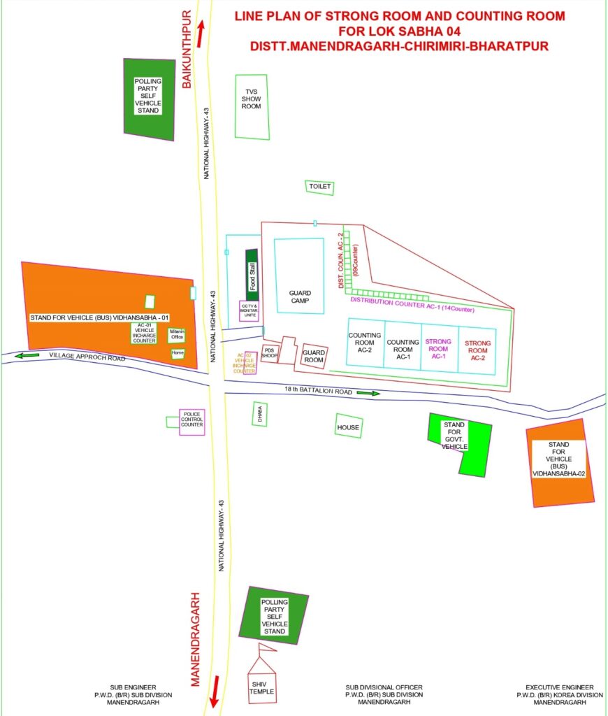एमसीबी/05 मई 2024/ लोकसभा निर्वाचन-2024 के लिए मनेंद्रगढ़-चिरमिरी-भरतपुर जिले के दोनों विधानसभा क्षेत्र के मतदान दलों को सामग्री वितरण एवं संग्रहण केंद्र के लिए सीजीएसडब्ल्यूसी गोदाम चैनपुर को स्ट्रांग रूम बनाया गया है। जहां से मतदान दलों को 06 मई 2024 की सुबह 06ः00 बजे से मतदान सामग्री का वितरण एवं 7 मई 2024 को मतदान समाप्ति पश्चात चूंकि भरतपुर-सोहनत दूरस्थ क्षेत्र होने कारण मतदान सामग्रियों का संग्रहण 08 मई 2024 की सुबह तक पूर्ण होने की संभावना है। जिसको दृष्टिगत रखते हुए अधिकारी-कर्मचारी के वाहनों के लिए पार्किंग एवं आम नागरिकों के लिए मार्ग की व्यवस्था की गई है। जिसके तहत पार्किंग व्यवस्था अन्तर्गत विधानसभा क्षेत्र क्रमांक 01 भरतपुर-सोनहत के लिए वाहन नियंत्रण शाखा विधानसभा क्षेत्र क्र. 01 के लिए सीजीएसडब्ल्यूसी गोदाम चैनपुर को स्ट्रांग रूम के सामने पार्किंग स्थल का चयन किया गया है। जहां पर मतदान दल की बसों एवं चार पहिया वाहनों के लिये पार्किंग की व्यवस्था किया गया है। इसी प्रकार विधानसभा क्षेत्र क्रमांक 02 मनेंद्रगढ़ के लिए वाहन नियंत्रण शाख विधानसभा क्षेत्र क्र. 02 के लिए 18 वीं बटालियन के लिए जाने वाली रोड़ के तरफ पार्किंग की व्यवस्था की गयी है। इसी प्रकार विधानसभा क्षेत्र 01 व विधानसभा 02 के लिए मतदान दल कर्मी जो स्वयं के वाहन से आयेंगे, उनके लिए भी अलग-अलग पार्किंग की व्यवस्था की गयी है। इसके साथ ही शासकीय वाहनों के लिए भी स्थल का निर्धारण कर लिया गया है।