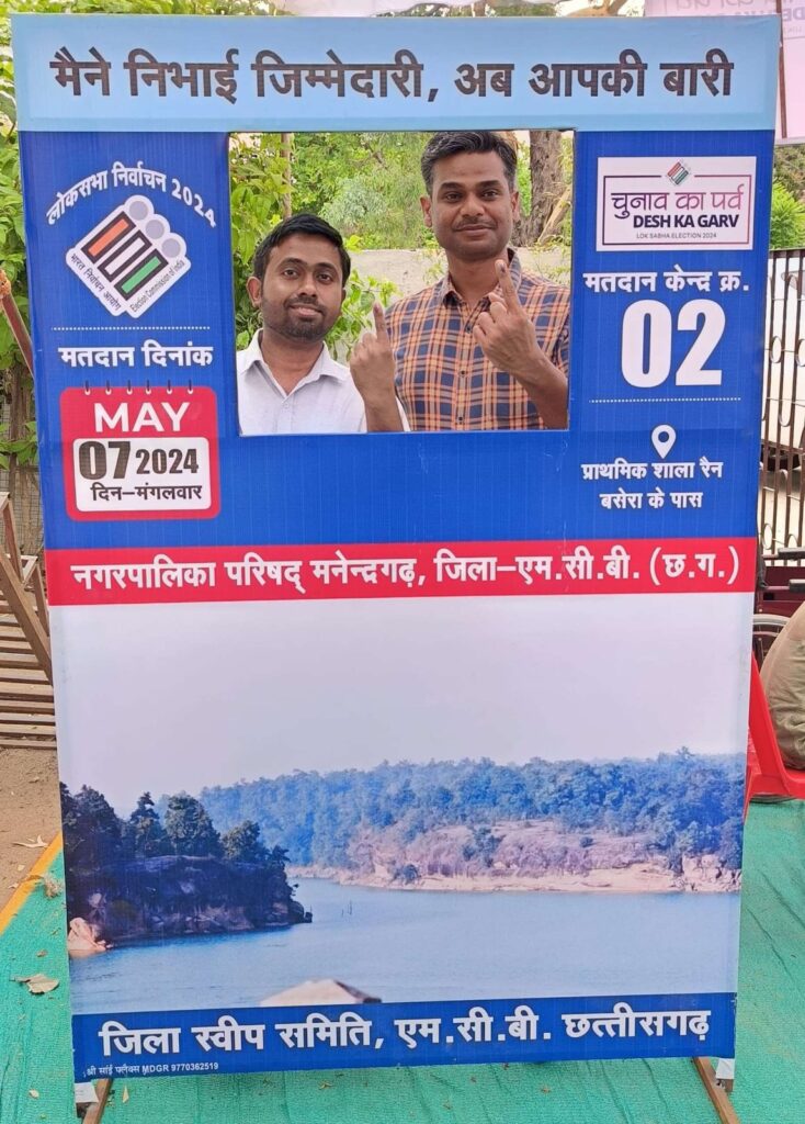 एमसीबी/07 मई 2024/ चुनाव का पर्व देश का गर्व में आज हिस्सा लेने कलेक्टर एवं जिला निर्वाचन अधिकारी श्री डी. राहुल वेंकट एवं पुलिस अधीक्षक श्री चन्द्रमोहन सिंह ने कतार में लगकर मतदान किया। नगर पालिका परिषद मनेंद्रगढ़ प्राथमिक शाल रैन बसेरा के पास मतदान क्रमांक 02 में सामान्य मतदताओं के समान लाइन में लग कर मतदान किया। इस दौरान जिला निर्वाचन अधिकारी ने मतदान केन्द्र का निरीक्षण किया। कलेक्टर ने मतदान केंद्र में उपस्थित सुरक्षा बल के जवानों के साथ हाथ मिलाकर पूरी निष्ठा से अपने दायित्वों का निर्वहन करने के लिए प्रोत्साहित किया। साथ ही उन्होंने मतदान केंद्र में उपस्थित सभी अधिकारी-कर्मचारी को भी अपने दायित्वों का पूरी निष्ठा से निर्वहन करने के लिए प्रेरित किया। कलेक्टर एवं जिला निर्वाचन अधिकारी तथा पुलिस अधीक्षक ने एक साथ सेल्फी ली। कलेक्टर ने मतदान केंद्र में उपस्थित सभी मतदाताओं को जागरूकता के साथ मतदान करने के लिए बधाई देते हुए शुभकामनाएं दी। मतदान केंद्र में दिव्यांग मतदाताओं को मतदान कराने के लिए स्काउट गाइड के बच्चों को तैनात किया गया है। जिनको सेवा मित्र का नाम दिया गया है। कलेक्टर ने मतदान केन्द्र में उपस्थित बीएलओ को सभी का सहयोग करने की सलाह दी। इसके साथ ही कलेक्टर ने सभी मतदाता से अपने मताधिकार का उपयोग करने की अपील की।