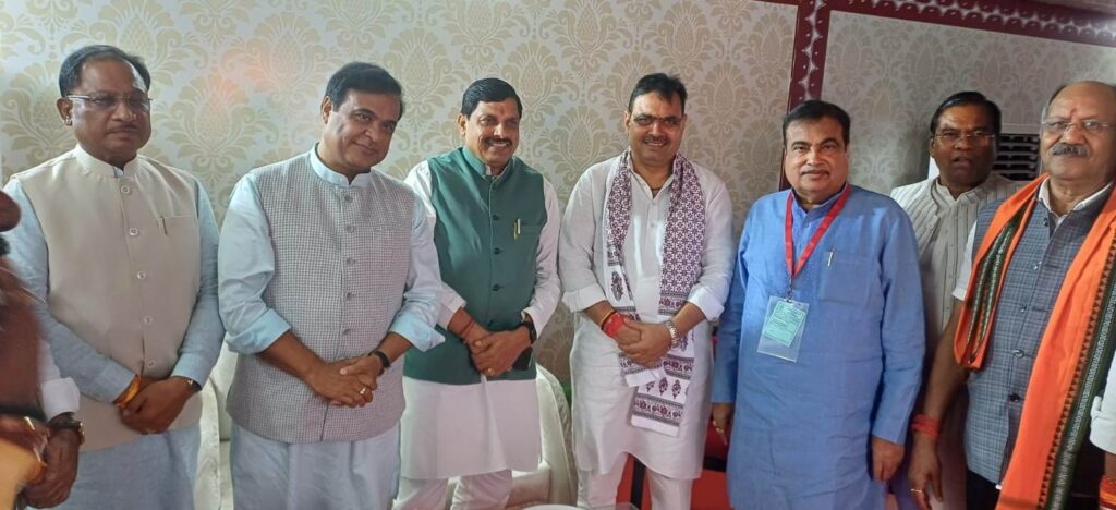 रायपुर, 12 जून 2024/ मुख्यमंत्री श्री विष्णु देव साय ने आज भुवनेश्वर प्रवास के दौरान केन्द्रीय सड़क परिवहन और राजमार्ग मंत्री श्री नितिन गडकरी से सौजन्य मुलाकात की। इस अवसर पर असम के मुख्यमंत्री श्री हिमंत बिस्वा सरमा, मध्य प्रदेश के मुख्यमंत्री डॉ. मोहन यादव, राजस्थान के मुख्यमंत्री श्री भजनलाल शर्मा, छत्तीसगढ़ के उप मुख्यमंत्री श्री अरूण साव और रायपुर संसदीय क्षेत्र से नव निर्वाचित सांसद श्री बृजमोहन अग्रवाल भी उपस्थित थे। गौरतलब है कि मुख्यमंत्री श्री साय आज ओडिशा के नए मुख्यमंत्री श्री मोहन चरण माझी के शपथ ग्रहण समारोह में शामिल होने के लिए भुवनेश्वर पहुंचे थे।