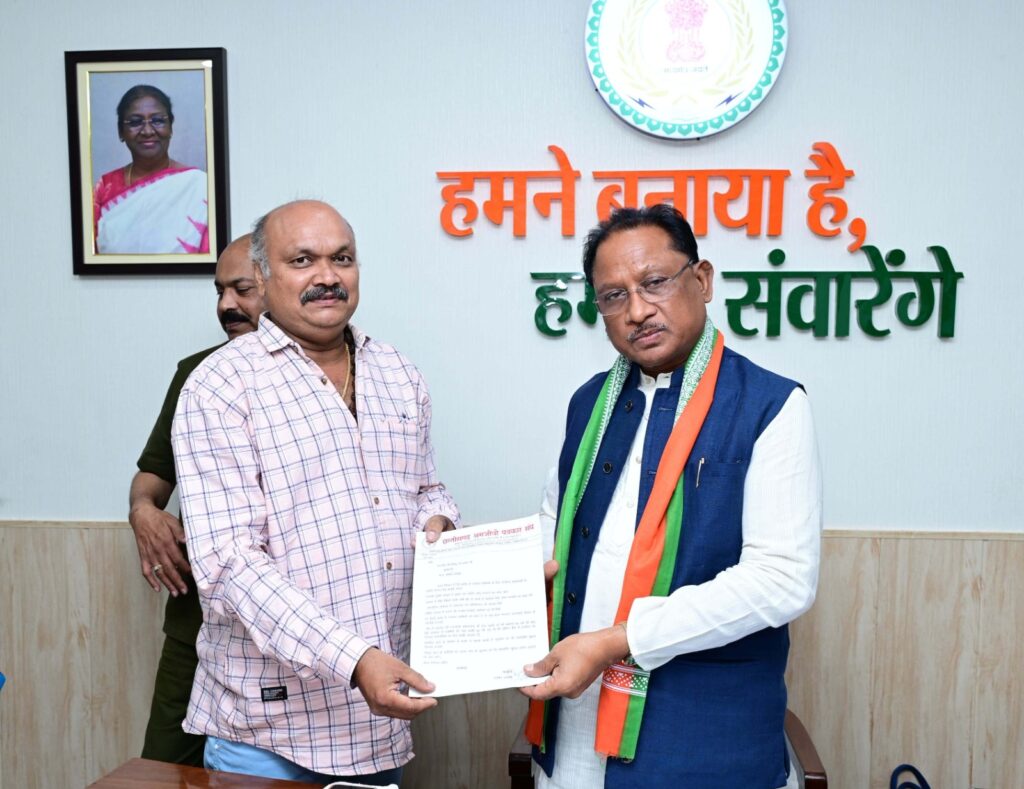 रायपुर, 15 जून 2024/ मुख्यमंत्री श्री विष्णु देव साय से आज यहां उनके निवास कार्यालय में छत्तीसगढ़ श्रमजीवी पत्रकार संघ के अध्यक्ष श्री अरविन्द अवस्थी ने सौजन्य मुलाकात की। इस दौरान उन्होंने मुख्यमंत्री श्री साय को प्रदेश के पत्रकारों के हित में चर्चा की और ज्ञापन सौंपा।