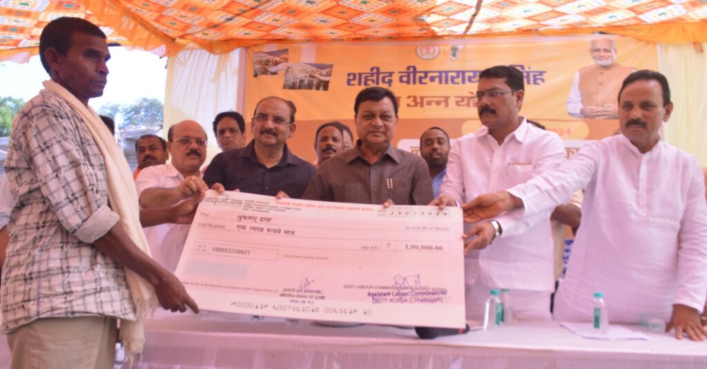 श्रम मंत्री ने हितग्राहियों को सहायता राशि का चेक प्रदान किया