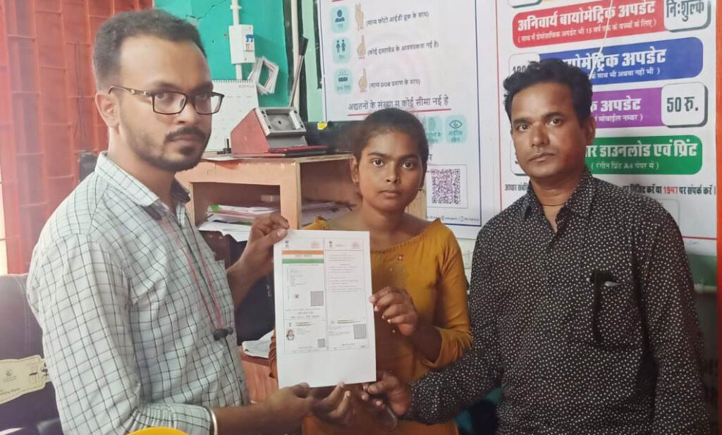 भानुप्रिया को तत्काल दिया गया आधार कार्ड की प्रतिलिपि