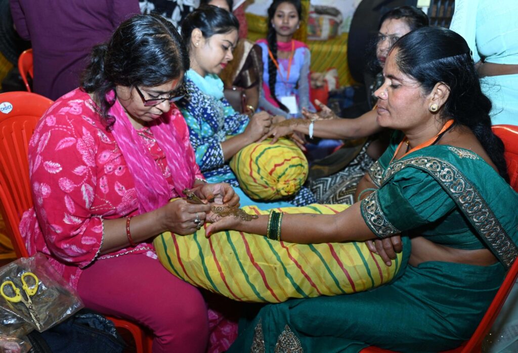 महतारियों ने बनवाया लाख की चूड़ियाँ, मेहंदी और टैटू