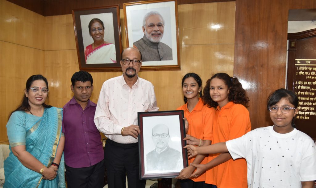 रायपुर, 18 अगस्त 2025 :राज्यपाल श्री रमेन डेका से आज राजभवन में कोपलवाणी विशेष स्कूल रायपुर के बच्चों ने मुलाकात की। मूक-बधिर बालक श्री गौकरण पाटिल ने श्री डेका को उनकी पोट्रेट भेंट की। गौकरण के हाथ नहीं है साथ ही वह सुनने और बोलने में भी असमर्थ है। राज्यपाल का पोट्रेट उसने अपने पैरों से बनाया है। श्री डेका ने चित्रकला में निपुण बच्चोें का उत्साहवर्धन किया।