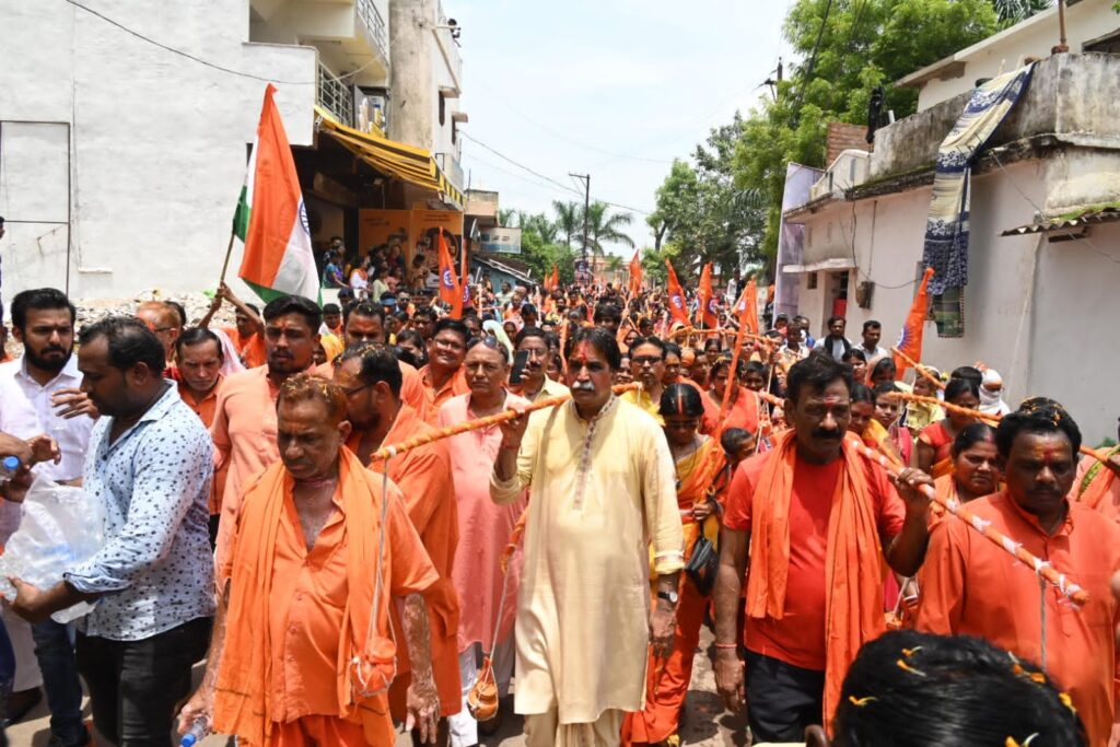 बोल बम औऱ भारत माता की जयघोष के गगनभेदी नारे के साथ खमतराई से निकली विशाल काँवर यात्रा
