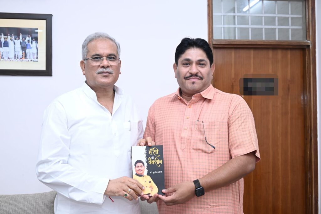 रायपुर, 16 अगस्त 2022/ मुख्यमंत्री श्री भूपेश बघेल से आज यहाँ उनके निवास कार्यालय में देश के प्रसिद्ध कवि पद्मश्री डॉ. सुनील जोगी ने सौजन्य मुलाकात की । उन्होंने मुख्यमंत्री श्री बघेल को उनकी जन- हितैषी योजनाओं के लिए बधाई दी और अपनी नवीन कृति ‘हँसी की वैक्सीन’ भी भेंट की ।