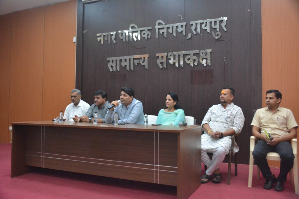 रायपुर – राजधानी शहर के प्रथम नागरिक नगर पालिक निगम रायपुर के महापौर एजाज ढेबर ने रायपुर शहर में दिनांक 26, 27, 28 अगस्त 2022 को आयोजित होने जा रहे अखिल भारतीय महापौर परिषद के तीन दिवसीय राष्ट्रीय सम्मेलन की तैयारियों को लेकर निगम के जनप्रतिनिधियों से चर्चा करते हुए सुझाव लेने आज नगर निगम मुख्यालय भवन महात्मा गाँधी सदन के चतुर्थ तल पर निगम सामान्य सभा सभागार में सभापति श्री प्रमोद दुबे,