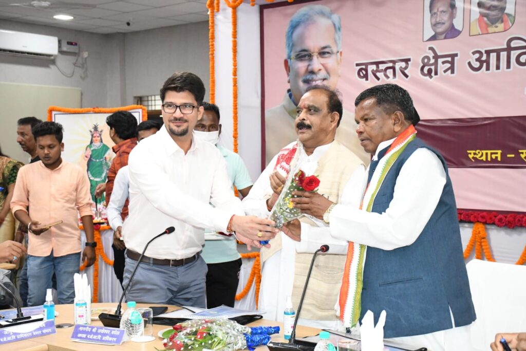 बस्तर क्षेत्र आदिवासी विकास प्राधिकरण की बैठक में शामिल हुए अध्यक्ष लखेश्वर बघेल और उद्योग मंत्री कवासी लखमा