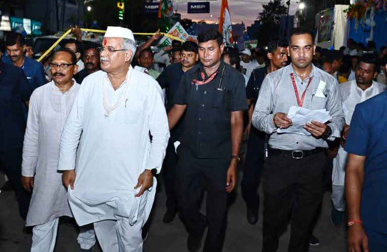 रायगढ़ के हेमूकालाणी चौक से चक्रधर नगर चौक तक मुख्यमंत्री भूपेश बघेल ने किया पैदल रोड शो
