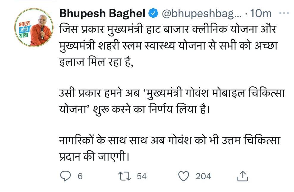 गोवंश को उत्तम चिकित्सा सेवा प्रदान करने के लिए छत्तीसगढ़ में शुरू होगी मुख्यमंत्री गोवंश मोबाइल चिकित्सा योजना
