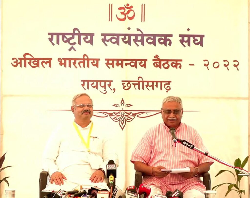 रायपुर, छत्तीसगढ़ (12.09.2022) रायपुर में संपन्न तीन दिवसीय अखिल भारतीय समन्वय बैठक_2022 की जानकारी डॉ. मनमोहन वैद्य जी ने पत्रकारों को दी। उन्होंने कहा कि भारत की स्वाधीनता के अमृत महोत्सव के अवसर पर संघ से प्रेरित सभी विविध संगठनों ने देश के स्वत्व को जागृत करने के लिए कार्य को विस्तार देने पर चर्चा की।