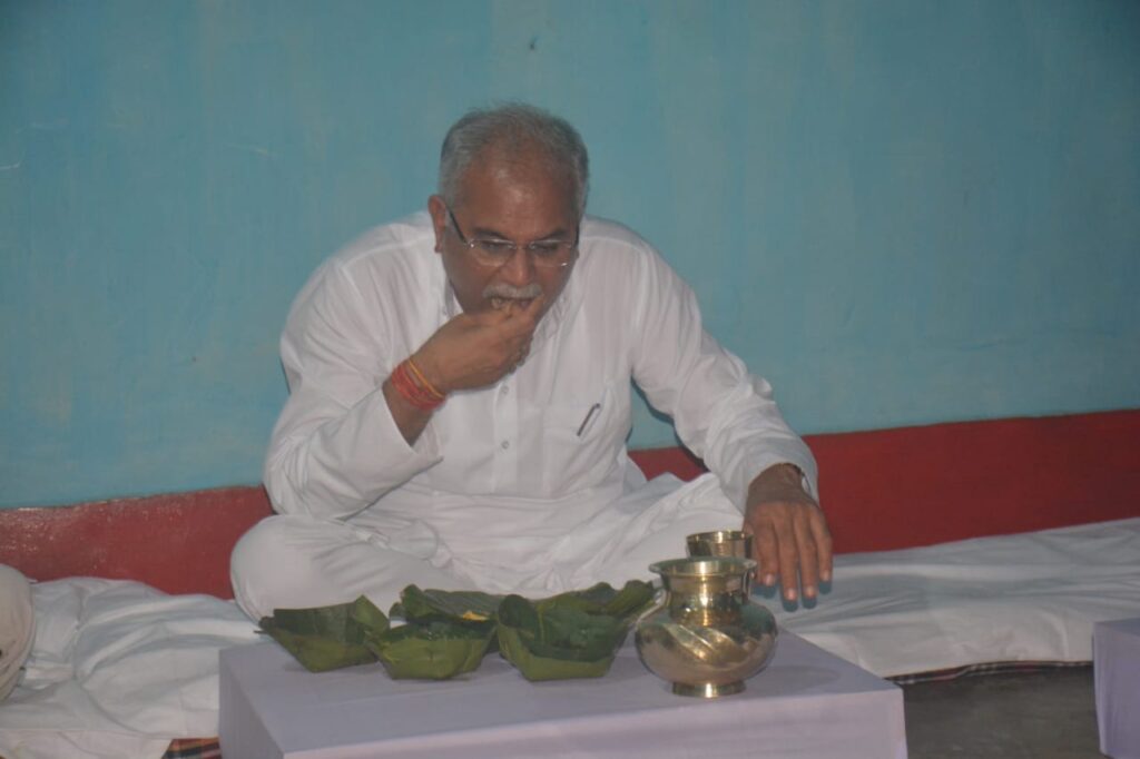 मुख्यमंत्री भूपेश बघेल ने घरघोड़ा निवासी चमरु पैकरा के घर बड़ी ही सादगी के साथ लिया भोजन का स्वाद