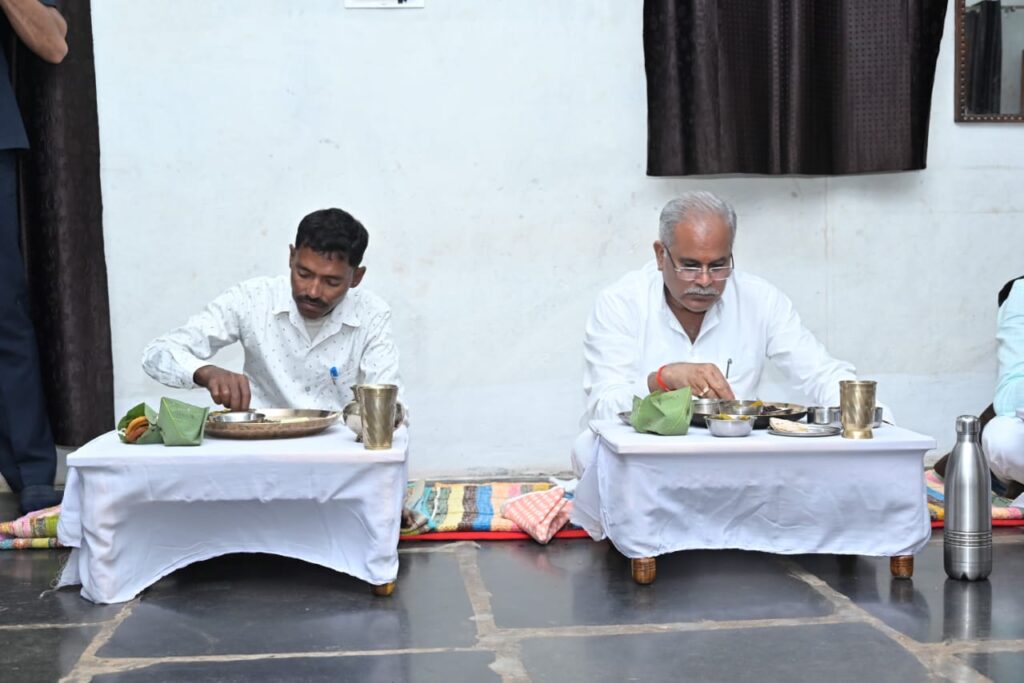 मुख्यमंत्री भूपेश बघेल ने किसान गोपीचंद हिरवानी के घर किया भोजन