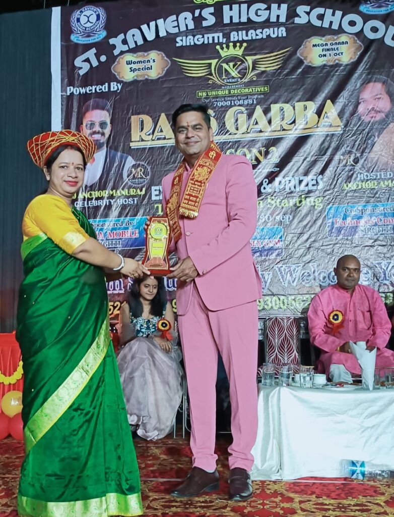 बिलासपुर,नवरात्रि के पावन अवसर पर सेंट जेवियर स्कूल सिरगिट्टी के द्वारा रास गरबा कार्यक्रम का आयोजन किया गया इस दौरान विशिष्ट अतिथि के रूप में पहुंचे अभिनेता अखिलेश पांडे ने सभी लोगों को नवरात्रि की शुभकामनाएं दी और गरबा और डांडिया के बीच का अंतर लोगों को बताया जब उन्होंने वहां उपस्थित लोगों से पूछा की डांडिया और गरबा में क्या अंतर है तब मुख्य अंतर को किसी ने भी नहीं बताया तब अभिनेता अखिलेश पांडे ने गरबा और डांडिया के बीच के अंतर को बताया और कहा कि गरबा दुर्गा मां की आरती के पहले किया जाता है जबकि डांडिया आरती होने के पश्चात किया जाता है इस कार्यक्रम के एंकर अमनदीप रहे इस दौरान इस कार्यक्रम में सेंट जेवियर स्कूल के सीएमडी जीएस पटनायक बिलासपुर शहर के विधायक शैलेश पांडे अभिनेता आकाश डहरिया सेंट जेवियर स्कूल के प्रशासन कमेटी के बहुत से लोग प्रिंसिपल संतोषी डाकुआ सिरगिट्टी के पार्षद पुष्पेंद्र साहू वरिष्ठ पत्रकार अनिल शुक्ला आदि उपस्थित रहे