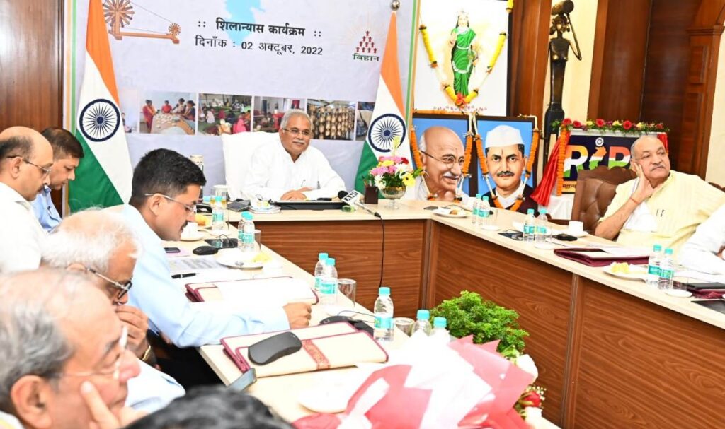रायपुर, 02 अक्टूबर 2022/रूरल इंडस्ट्रियल पार्क में संचालित आजीविकामूलक गतिविधियों से हम महिलाएं आर्थिक रूप से स्वावलंबी हो रही हैं, रोजगार और आमदनी का साधन मिलने से परिवार में हमारा सम्मान बढ़ा है। यह उद्गार आज गौठानों में काम कर रही स्व-सहायता समूह की महिलाओं ने मुख्यमंत्री श्री भूपेश बघेल से वर्चुअल चर्चा के दौरान व्यक्त किए। मुख्यमंत्री श्री भूपेश बघेल ने आज महात्मा गांधी रूरल इंडस्ट्रियल पार्क योजना का प्रदेशव्यापी शुभारंभ करते हुए प्रदेश के 300 गौठानों में रूरल इंडस्ट्रियल पार्क का वर्चुअल भूमिपूजन किया। इस अवसर पर उन्होंने जांजगीर-चांपा जिले के जर्वे, बेमेतरा जिले के अमलडीह, कांकेर जिले के सराघू नवगांव, बलौदाबाजार के लटुवा और रायगढ़ के डोंगीतराई गांव के गौठान में उपस्थित महिलाओं और युवाओं से चर्चा कर वहां संचालित गतिविधियों के बारे में विस्तार से जानकारी ली।