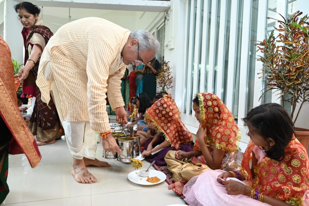 नवरात्रि के पावन अवसर पर भिलाई 3 स्थित मुख्यमंत्री निवास में कन्याभोज का आयोजन किया गया