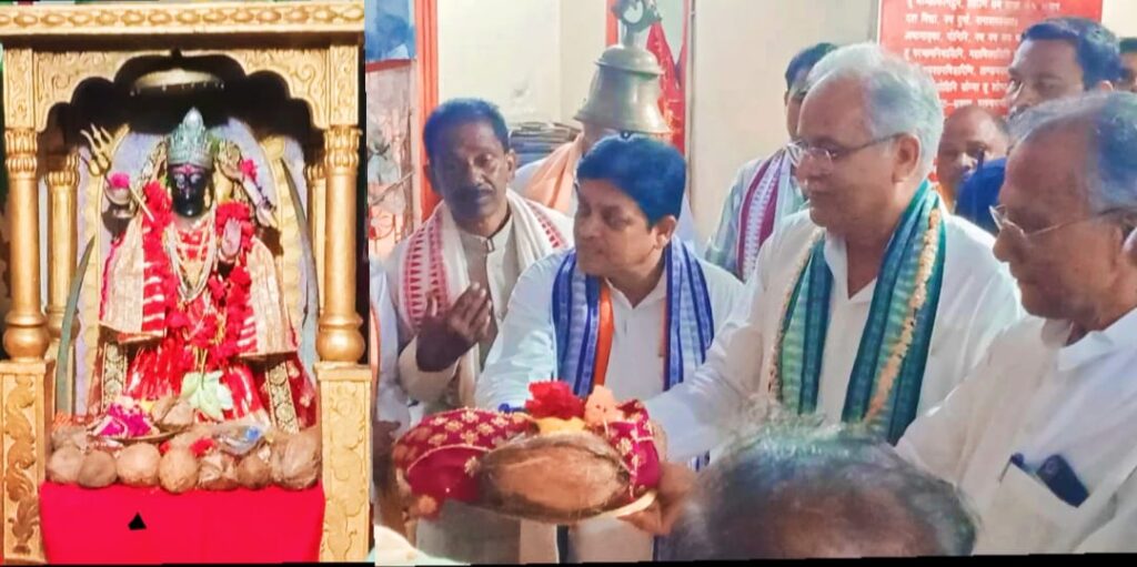 मुख्यमंत्री भूपेश बघेल मां रामचण्डी देवी के मंदिर पहुँचकर देवी मां के दर्शन किए।