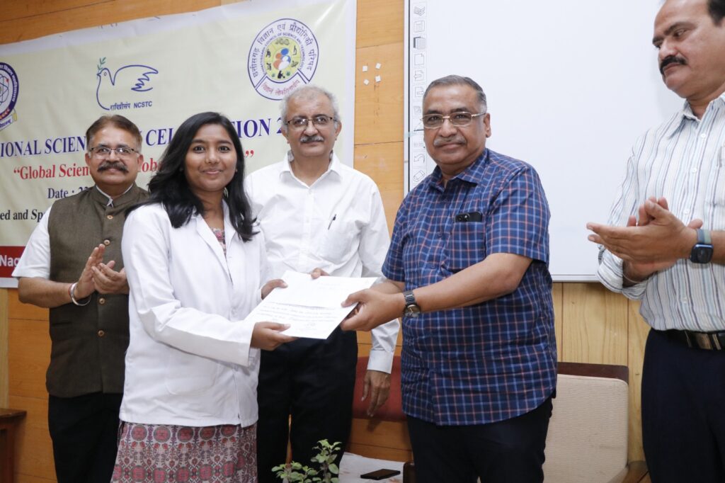 रायपुर 28 फ़रवरी 2023। शासकीय नागार्जुन स्नातकोत्तर महाविद्यालय (साइंस कॉलेज), रायपुर के रक्षा अध्ययन विभाग के विभागाध्यक्ष प्रोफेसर डॉ. गिरीश कांत पांडे ने जानकारी देते हुए बताया है कि सांइस कॉलेज में “राष्ट्रीय विज्ञान दिवस” का भव्य आयोजन किया गया। यह आयोजन 22 फरवरी से आरंभ किया गया था, जिसका आज समापन हुआ है। इस अवसर पर विज्ञान प्रदर्शनी, पोस्टर प्रदर्शनी का भी आयोजन किया गया था। आज “वैश्विक विज्ञान वैश्विक मानव कल्याण के लिए” विषय पर व्याख्यान आयोजित किया गया था। इस कार्यक्रम के मुख्य अतिथि राकेश चतुर्वेदी (भा. व. से.) चेयरमैन, जैव विविधता मंडल तथा विशेष अतिथि वरिष्ठ वैज्ञानिक, प्रशांत कवीश्वर सीजिकॉस्ट रहे। मुख्य अतिथि के रूप में बोलते हुए राकेश चतुर्वेदी ने कहा कि भारतीय वैज्ञानिकों का शोध का दिशा ही मानव कल्याण होता है। हम “वसुधैव कुटुंबकम्” के सिद्धांत पर काम करने वाले लोग हैं। हमारा लक्ष्य “सर्वे भवंतू सुखिन:” होता है। डॉक्टर कविश्वर ने कहा कि ‘वैज्ञानिक सोच आज की आवश्यकता है।’