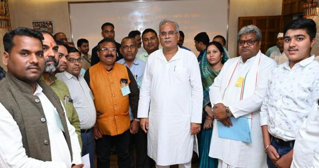 रायपुर, 14 मार्च 2023/ मुख्यमंत्री श्री भूपेश बघेल से आज यहां छत्तीसगढ़ विधानसभा स्थित उनके कार्यालय कक्ष में सक्ती जिले अंतर्गत नवनिर्मित तहसील भोथिया के निवासियों के प्रतिनिधिमंडल ने मुलाकात की। प्रतिनिधिमंडल ने उप तहसील भोथिया का उन्नयन करते हुए तहसील का दर्जा दिया जाने पर मुख्यमंत्री का आभार जताया। मुख्यमंत्री को भोथिया के निवासियों ने बताया कि उप तहसील से तहसील का दर्जा दिया जाने से अब क्षेत्र के निवासियों के राजस्व सहित अन्य कार्य सुगमता से होंगे और साथ ही क्षेत्र का विकास भी अब तीव्र गति से होगा। इस अवसर पर सारंगढ़ विधायक श्रीमती उत्तरी जांगड़े, डॉ चोलेश्वर चंद्राकर, श्री नंदकुमार सिंह चंद्रा, श्री ताम्रध्वज चंद्रा, श्री खेलाराम चौहान, श्री राजकुमार चंद्रा, श्री गुरु चरण चंद्रा सहित अन्य नागरिकगण उपस्थित थे।