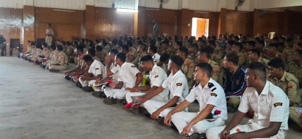रायपुर 08 जुलाई 2022 :एनसीसी प्रशिक्षण अकादमी, लखोली रायपुर में आयोजित एनसीसी के एडवांस लीडरशिप कैंप के तृतीय दिवस पीटी और ड्रिल के पश्चात कैडेट्स को आन्ध्रप्रदेश के लेफ्टिनेण्ट गौतम ने “नेतृत्व के सिद्धान्त व तरीके” विषय पर विस्तृत जानकारियाँ दी।
