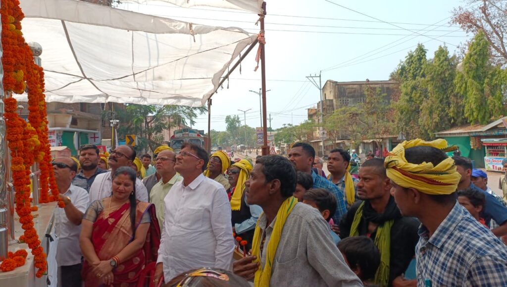 भाटापारा शहर में सर्व आदिवासी समाज द्वारा मंडी रोड स्थित तिगड्डा चौक में शहीद वीर नारायण सिंह जी की मूर्ति स्थापित कर विमोचन किया गया, जिसमें मुख्य अतिथि सतीश अग्रवाल (सदस्य निगम मंडल छत्तीसगढ़ शासन) जी ने अपने उध्बोधन में कहां की आज भी इस वीर की गौरवगाथा छत्तीसगढ़ के जनमानस के बीच सुनाई देती है। सोनाखान के लोग उन्हें आज भी देवता की तरह पूजते हैं। प्रदेशवासियों के साथ- साथ पूरे देश भर में उन्हें एक आदर्श के रूप में माना जाता है। गरीबों के अधिकारों के लिए लड़ने वाले इस जमींदार को इस देशभक्त वीर को, भारत माता के सच्चे पुत्र को शत् शत् नमन करते हैं। साथ ही छत्तीसगढ़ सरकार की जनकल्याणकारी योजनाओं के बारे में जानकारी दिया गया। भूपेश सरकार के नए बजट में लिए गए जन हितैषी फैसलों के बारे में जानकारी दिया गया। इस कार्यक्रम में, अमर मंडावी ब्लॉक अध्यक्ष ग्रामीण कांग्रेस, मनीष पंजवानी नगर पालिका परिषद भाटापारा एल्डरमैन, संतोष अग्रवाल, बंशी नेताम, टेक सिंह ध्रुव, चक सरपंच भानु राम छेदईहा, दीवान, कुलंजन सिंह नेताम, मंत्री लखन सिंह मरई, मंत्री कांशी राम मरई, सचिव संतोष कुमार ध्रुव, सलाहकार गोविंद नेताम, लखन ध्रुव, रायपंच गण कृष्ण कुमार छेदईहा, दुकल्हा ध्रुव, हनुमंत मंडावी, अजय ध्रुव, पंचराम ध्रुव, प्रेमलाल ध्रुव, पुनाराम ध्रुव, राम नारायण सिवाराम, खेदुराम, समशरण, मरकाम, साधे, जनकुमार, अशोक कुमार, सतीश, कन्हैया, रवि कुमार, मदन लाल तिरिथ राम, नेतु राम, आजूराम ध्रुव, समाज दूत पंचराम ध्रुव, केदार मिश्रा, कन्हैया वर्मा, एवं समस्त आदिवासी समाज गणमान्य नागरिक बड़ी संख्या में उपस्थित रहे।*