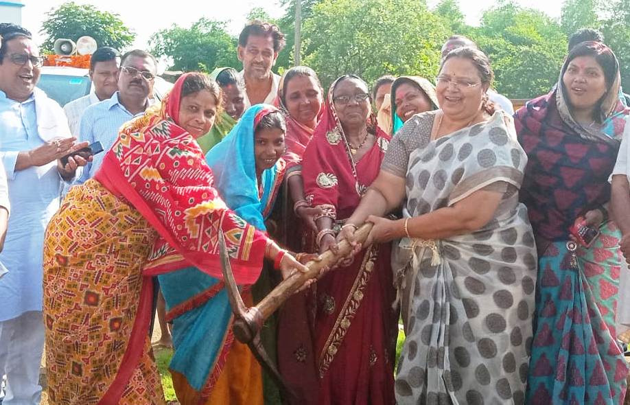 मंत्री श्रीमती भेंड़िया ने ग्राम रेंगनी, जोगीभाट, बटेरा और सिवनी में विभिन्न निर्माण कार्यों का भूमिपूजन किया