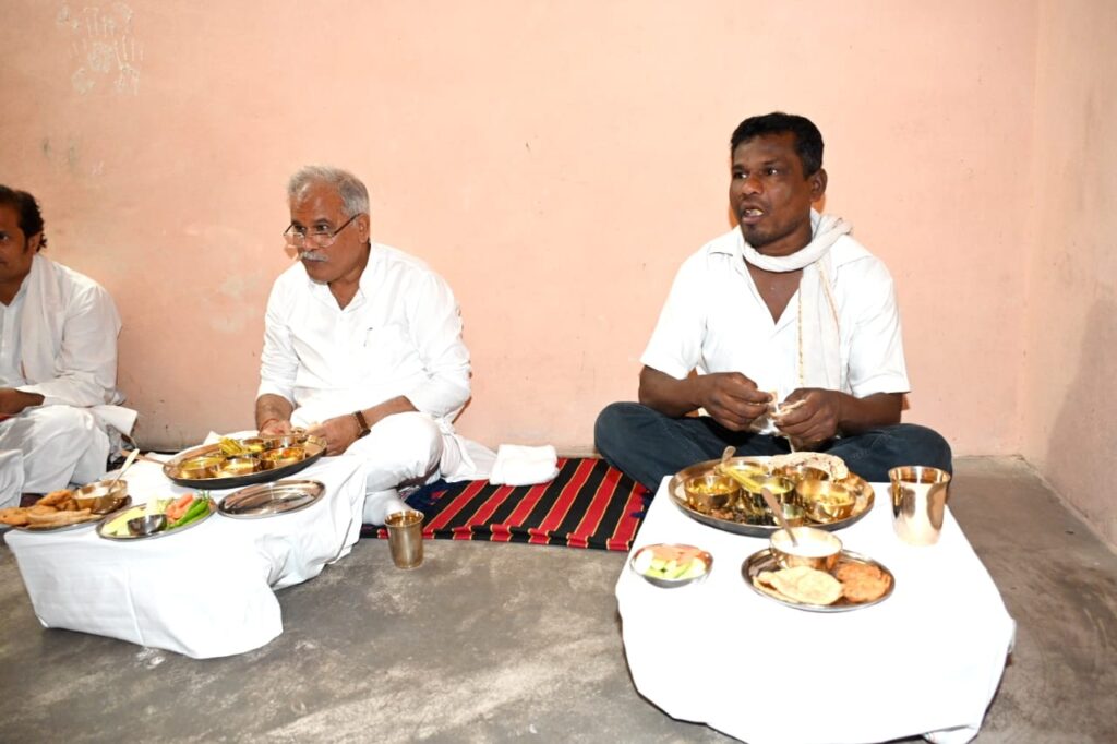 मुख्यमंत्री भूपेश बघेल ने यादव परिवार के घर लिया स्वादिष्ट छत्तीसगढ़ी भोजन का आनंद