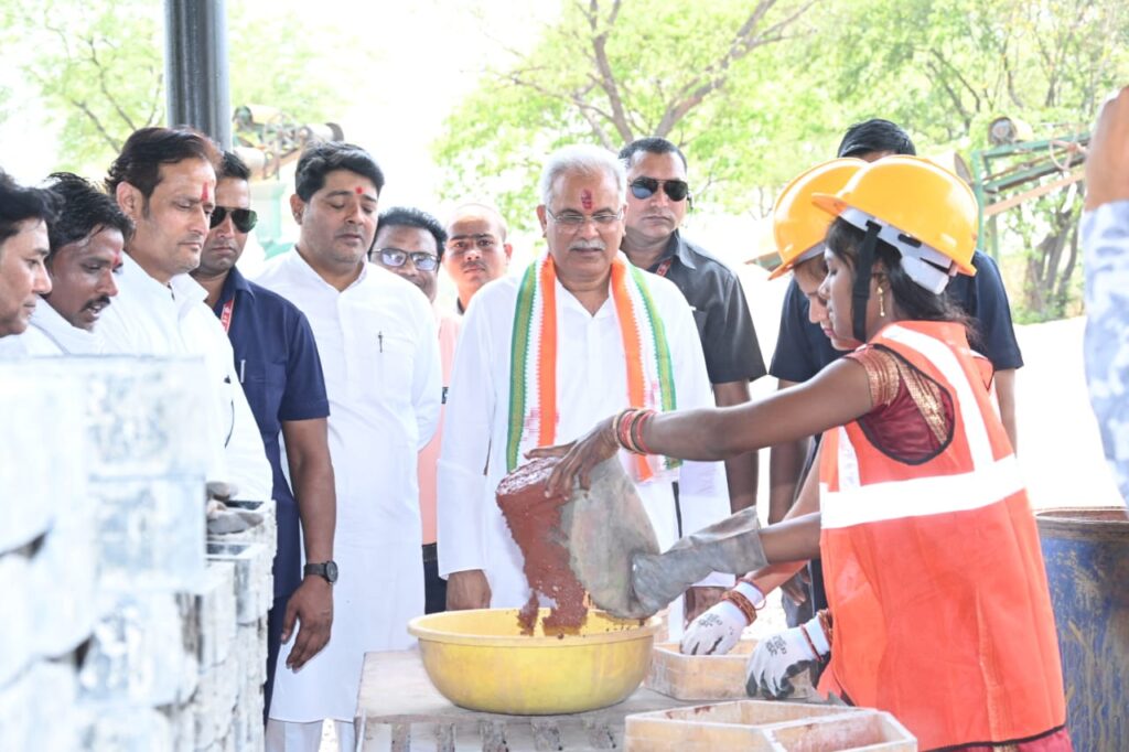 जरवाय के सीएंडडी प्लांट में पेवर ब्लॉक संयंत्र निर्माण का अवलोकन करते हुए मुख्यमंत्री श्री बघेल ने यहां पर काम करने वाली अटारी गांव की आरती डहरे से पूछा कि प्रतिदिन कितनी आमदनी होती है ? आरती ने बताया कि प्रतिदिन 200 रुपये कमा लेती हूं। आरती ने बताया कि प्रतिदिन यहां पर 2500 पेवर ब्लॉक का निर्माण किया जाता है। आरती ने मुख्यमंत्री से कहा कि यह पहल रोजगार प्रदान करने की दिशा में एक अच्छी शुरुआत है। वहीं मुख्यमंत्री ने उन्हें शुभकामनाएं दीं।