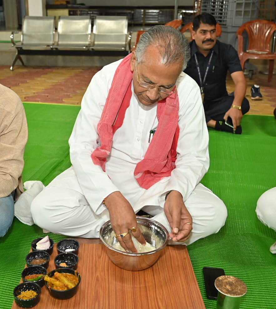 गृहमंत्री ताम्रध्वज साहू ने बोरे-बासी खाकर श्रमिकों को दिया सम्मान