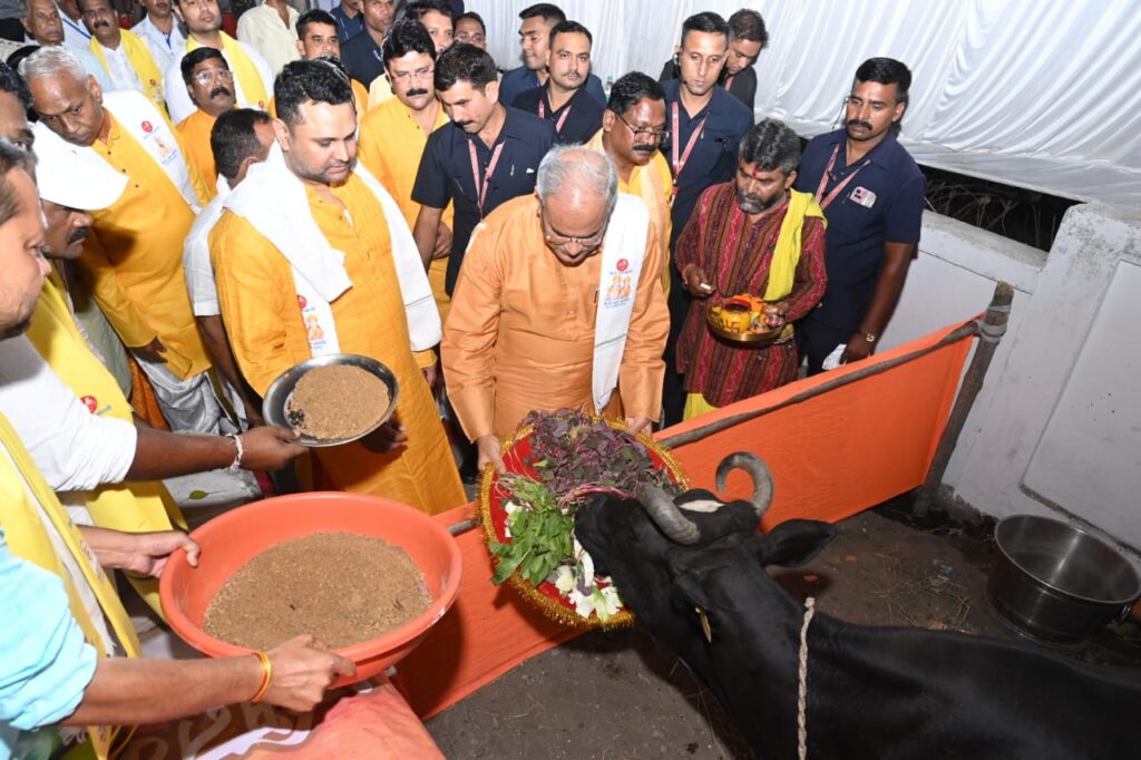 मुख्यमंत्री ने गौ माता को चारा खिलाया और गोधन के समृद्धि की कामना की