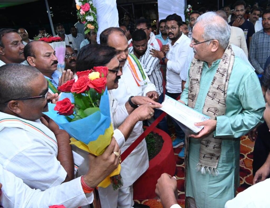 रायपुर, 23 अगस्त 2023/ मुख्यमंत्री श्री भूपेश बघेल को जन्मदिवस की शुभकामनाएं देने आज शाम को भी उनके निवास पर नागरिकों का तांता लगा रहा। विभिन्न जिलों से अनेक जनप्रतिनिधि उन्हें शुभकामनाएं देने अपने क्षेत्र के नागरिकों के साथ पहुंचे। संसदीय सचिव श्रीमती अंबिका सिंहदेव और श्री पारसनाथ राजवाड़े, विधायक श्री लालजीत सिंह राठिया, श्री रामकुमार यादव ने अपने क्षेत्र के नागरिकों के साथ मुख्यमंत्री से मुलाकात कर उन्हें गुलदस्ता भेंटकर जन्मदिन की बधाई दी। इस अवसर पर छत्तीसगढ़ भवन एवं सन्ननिर्माण कर्मकार कल्याण मण्डल के अध्यक्ष श्री सन्नी अग्रवाल ने भी मुख्यमंत्री को अपने समर्थकों के साथ जन्मदिन की बधाई दी।