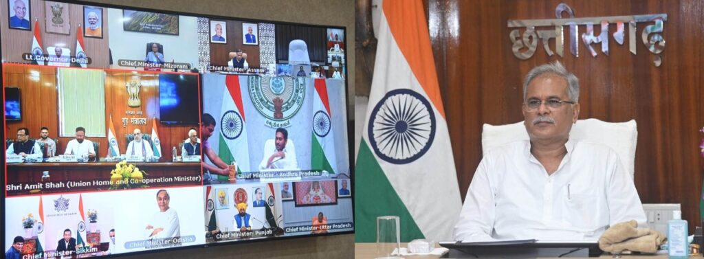 मुख्यमंत्री श्री भूपेश बघेल केंद्रीय गृह मंत्री श्री शाह की अध्यक्षता में अभियान की तैयारियों के संबंध में आयोजित बैठक में वीडियो कॉन्फ्रेंसिंग से शामिल हुए