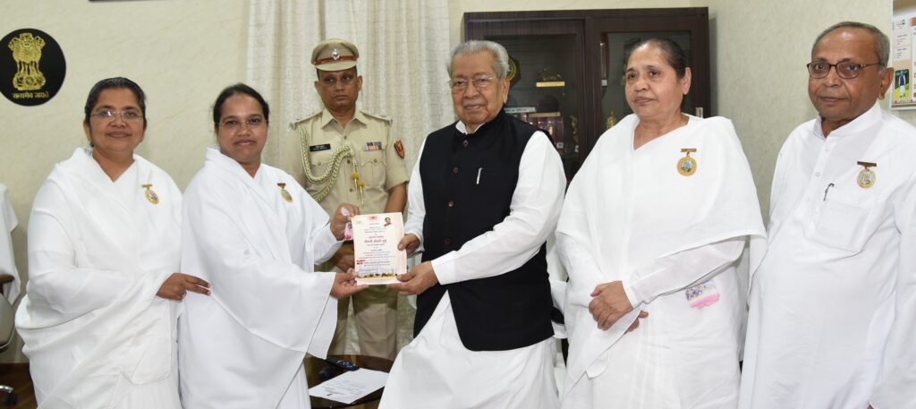 राज्यपाल श्री हरिचंदन से ब्रम्हाकुमारी सेवा केंद्र की बहनों ने सौजन्य भेंट की