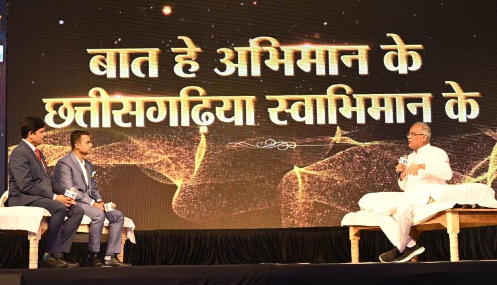 रायपुर, 18 सितम्बर 2023 : मुख्यमंत्री श्री भूपेश बघेल आज निजी चैनल बीएस टीव्ही द्वारा आयोजित ‘छत्तीसगढ़ के मेनीफेस्टो’ कार्यक्रम में शामिल हुए। कार्यक्रम में चर्चा के दौरान उन्होंने कहा कि छत्तीसगढ़ के पुरखों के सपनों को पूरा करने की यह शुरूआत है। महात्मा गांधी के सपने को साकार करने के लिए गांवों में सुराजी गांव योजना, राजीव गांधी किसान न्याय योजना, भूमिहीन मजदूर किसान न्याय योजना आदि का क्रियान्वयन किया जा रहा है। गांवों से पलायन न हो इसके लिए गांवों में ही उत्पादन और विपणन का केन्द्र बनाया गया है। छत्तीसगढ़ की संस्कृति और अस्मिता को पुष्पित एवं पल्लवित करने का कार्य सरकार द्वारा किया जा रहा है।