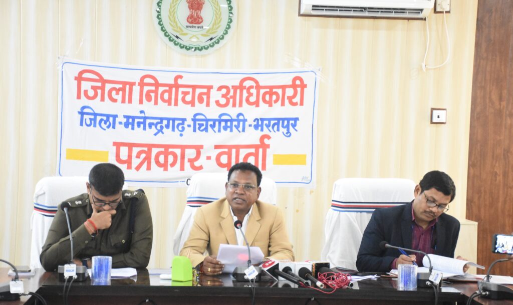 मनेंद्रगढ़/02 दिसम्बर 2023/ आज कलेक्ट्रेट सभा कक्ष में प्रेस वार्ता आयोजित की गई। ज्ञात हो कि छत्तीसगढ़ विधान सभा निर्वाचन 2023 हेतु मतगणना तिथि 03 दिसंबर 2023 को नियत है। कलेक्टर व ज़िला निर्वाचन अधिकारी श्री नरेन्द्र कुमार दुग्गा एवं पुलिस अधीक्षक श्री सिद्धार्थ तिवारी ने प्रेस वार्ता में निर्वाचन संबंधी विभिन्न जानकारियाँ दी। उन्होंने बताया कि जिला मनेंद्रगढ़-चिरमिरी-भरतपुर में विधासभा क्षेत्र क्रमांक 1 एवं 2 से क्रमशः 9-9 अभ्यर्थियों ने सहभागिता ली है। जिले में प्रातः 8 बजे से मतगणना की प्रक्रिया प्रारंभ की जायेगी। उन्होंने कहा कि ज़िले के दोनों विधान सभा क्षेत्रों को मिलाकर कुल 311324 मतदाताओं ने मतदान किया। जिसमे से 155293 पुरुष तथा 156023 महिला मतदाता हैं। थर्ड जेंडर के कुल 8 मतदाताओं में अपने मताधिकार का प्रयोग किया। विधान सभा क्षेत्र क्रमांक 01 भरतपुर-सोनहत के अन्तर्गत कुल 310 मतदान केंद्र बनाये गये थे। जिसमे से 78 मतदान केंद्र कोरिया ज़िले के अन्तर्गत आते हैं, उसी प्रकार विधान सभा क्षेत्र क्रमांक 02 मनेंद्रगढ़ में 156 मतदान केंद्र बनाये गये थे। उन्होंने बताया कि ज़िले में कुल 79 प्रतिशत मतदान हुई है।