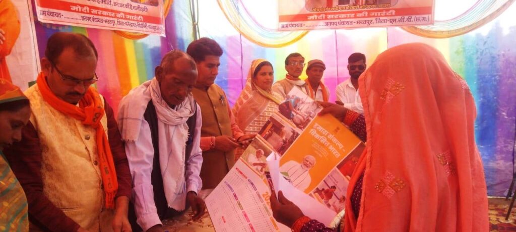 पूर्व विधायक श्रीमती चम्पा देवी पावले ने शिविर में 2047 तक भारत को विकसित भारत बनाने के लिए संकल्प दिलायी। स्वच्छ भारत मिशन, उज्ज्वला योजना, पीएम आवास, प्रधानमंत्री जीवन ज्योति बीमा योजना, सुरक्षा बीमा योजना, आयुष्मान योजना, किसान क्रेडिट कार्ड, किसान सम्मान निधि, पीएम पोषण अभियान, पीएम विश्वकर्मा योजना, आजीविका मिशन, पीएम गरीब कल्याण अन्न योजना आदि से संबंधित योजनाओं की जानकारी दी गई साथ ही योजना के लाभ से वंचित हितग्राहियों से आवेदन लिए गए। स्वास्थ्य टीम द्वारा टीबी, सिकल सेल की जांच की गई और आवश्यक परामर्श एवं निःशुल्क दवाई उपलब्ध कराया गया। स्कूली बच्चों द्वारा सांस्कृतिक कार्यक्रम की प्रस्तुति दी गई। इस अवसर पर विकसित भारत संकल्प यात्रा से संबंधित अधिकारी-कर्मचारी मौजूद रहे।