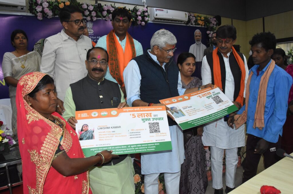 प्रधानमंत्री श्री मोदी के उद्बोधन के पश्चात पीएम जनमन के तहत विभिन्न हितग्राहियों को प्रमाण पत्र वितरित किए गए। कार्यक्रम में श्रीमती लक्ष्मी कमार एवं श्री संतराम कमार को आयुष्मान कार्ड वितरित किया गया। सिकल सेल जेनेरिक कार्ड ममता कमार, शांति पहाड़िया, कमार जनजाति के दो महिला स्व सहायता समूहों को 15-15 हजार रूपए की राशि, श्रीमती कुमारी कमार एवं सीमा कमार को प्रधानमंत्री आवास स्वीकृति प्रमाण-पत्र, एकलव्य आदर्श आवासीय विद्यालय से कमार जनजाति के खेल प्रतिभागियों को प्रमाण पत्र एवं पूर्ण रूप से शासकीय योजनाओं का लाभ ले रहे हितग्राहियों को प्रमाण पत्र वितरित किया गया।