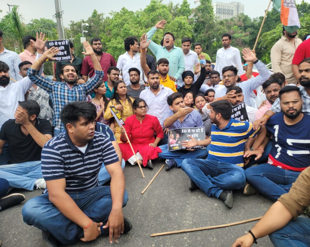 सोनिया गांधी जी को ईडी दफ्तर बुलाये जाने पर छत्तीसगढ़ एनएसयूआई ने दिल्ली में मुख्य चौक पर चक्काजाम करके जताया अपना विरोध